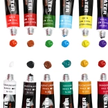 Die breite Farbpalette in 12-ml-Tuben deckt alles von Grundtönen bis zu feinen Nuancen ab. Einfaches Dosieren und sauberes Arbeiten ohne Kleckern.