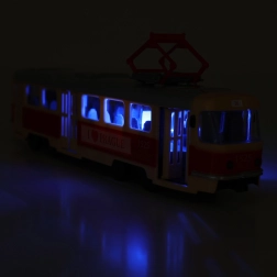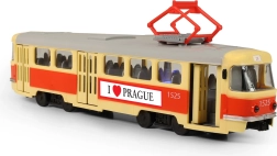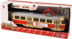 Diese Straßenbahn ist 28 cm lang, aus hochwertigem Kunststoff gefertigt und fährt frei. Das Spielzeug ermöglicht ein manuelles Öffnen der Türen, die mit einem Knopf auf dem Wagendach geschlossen werden. Bei jedem Öffnen ertönt eine Ansage auf Tschechisch, die zur Authentizität beiträgt.