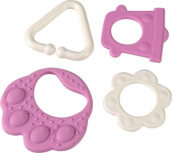 Der Beißring in Form einer rosa Bärentatze ist so gestaltet, dass er leicht von kleinen Kinderhänden gegriffen werden kann und gleichzeitig sicher ohne scharfe Kanten ist.