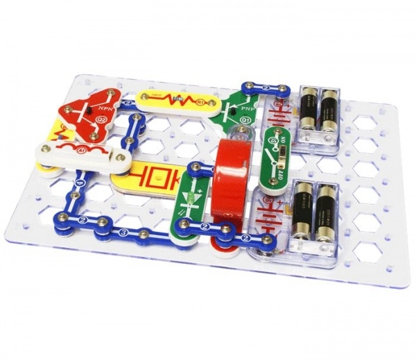 Die Bauteile werden einfach auf die transparente Platte aufgeklipst. Farbkennzeichnung und übersichtliche Schaltpläne sorgen für einen schnellen und korrekten Aufbau.