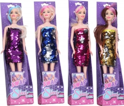 Anziehen, frisieren und ab in die Stadt zum Spaß! Diese stylische Puppe mit einem bunten Streifen im Haar und einem Kleid mit Pailletten, die die Farbe ändern, wenn man darüber streicht, ist ideal für jedes kleine Mädchen.