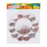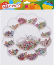 Dieses kreative Set ist ideal für Kinder und Erwachsene, die gerne basteln. Dank der Vielfalt an Formen und Farben fertigen Sie leicht Armbänder, Halsketten oder kleine Dekorationen. Die blumenförmige Box ist praktisch für eine übersichtliche Aufbewahrung.