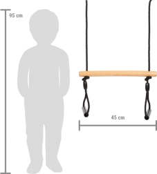 Diese Trapezschaukel kombiniert das traditionelle Schaukelgefühl mit der Möglichkeit von Gymnastikübungen. Ihr innovatives Design bietet mehr Bewegungsmöglichkeiten und Freude. Die Schaukelstange kann als Sitz oder Gymnastikstange verwendet werden, während die Gymnastikgriffe kleinen Akrobaten ermöglichen, neue Bewegungsmöglichkeiten zu entdecken. Geeignet für Anfänger und Fortgeschrittene.