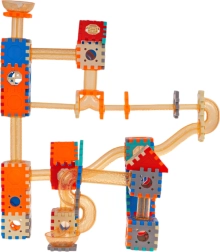 Trichter, Kurven und Tunnel sorgen für eine gleichmäßige Bewegung der Kugeln. Das Beobachten ihrer Fahrt macht Spaß, ist entspannend und fördert die Konzentration.