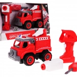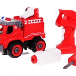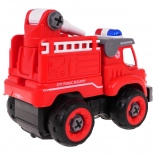 Dieses zerlegbare Feuerwehrfahrzeug verbindet spannenden Bauspaß mit actionreichem Spielen. Mit dem mitgelieferten Schraubendreher und dem batteriebetriebenen Bohrer können kleine Techniker einzelne Teile montieren und dabei Feinmotorik und Vorstellungskraft fördern. Nach Einsetzen des Steuerpanels kann das Auto selbstständig vorwärts oder rückwärts fahren oder wie ein RC‑Fahrzeug gesteuert werden.