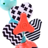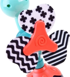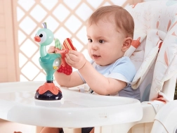 Das drehbare Spielzeug beschäftigt das Baby auf dem Hochstuhltablett und versüßt die Zeit während des Fütterns wie auch beim alltäglichen Spielen.