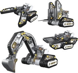 Dieser vielseitige Baukasten bietet Kindern und Eltern stundenlangen Spaß und Lernmöglichkeiten. Aus einem Set bauen Sie bis zu 4 verschiedene Modelle – Panzer, Fällmaschine, Gabelstapler und ein kettenbetriebenes Bau-Bagger-Set. Nach Anschluss des Akkus und Einlegen der Batterien in die Fernsteuerung erwachen die Modelle zum Leben und lassen sich bequem steuern.