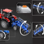 Nach dem Aufbau erhalten Sie einen ferngesteuerten Traktor mit detailliertem Cockpit, in dem ein Hebel als Hauptschalter dient. Sie profitieren von der Verstellung von Lenkrad und Sitz, beweglichen Kotflügeln, einer öffnenden Motorhaube und der Möglichkeit zur Montage weiteren Zubehörs. Zudem gibt es das Anheben der Heckkupplung und die 180°-Drehung der Aufnahme, was reale landwirtschaftliche Arbeitsabläufe authentisch nachbildet.