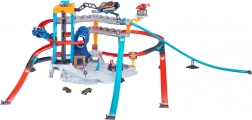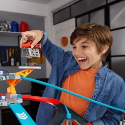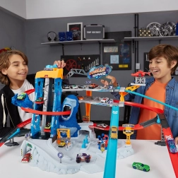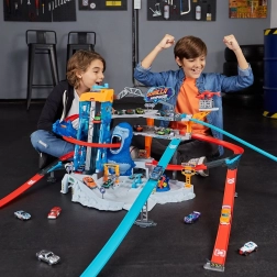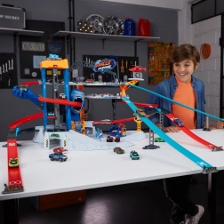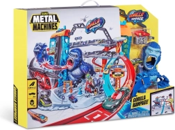 Die Rennbahn Metal Machines Gorilla Garage kommt mit Reparaturstationen und einer Plattform für den Rettungshubschrauber, der Ihre Fahrzeuge transportieren kann. Doch der riesige Gorilla-Wächter kreist verzweifelt und ist bereit zuzuschlagen! Können Sie durch seine großen Kiefer rasen und rechtzeitig entkommen?