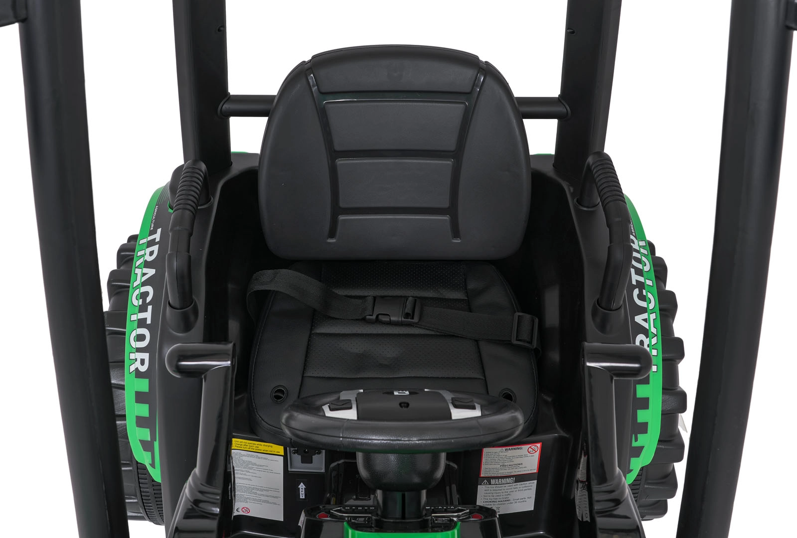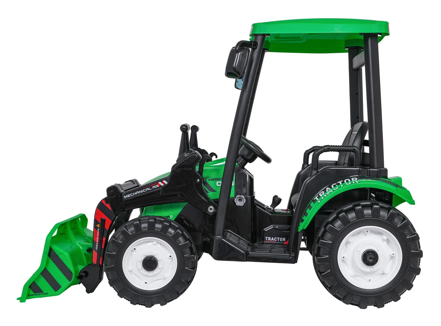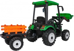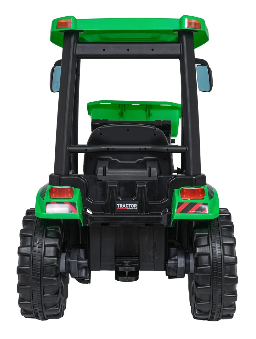 Der elektrische Traktor MEGA d68 in Grün ist die perfekte Wahl für kleine Traktorfahrer. Er bietet eine robuste Verarbeitung, eine funktionale Frontschaufel zum Beladen und einen geräumigen, abnehmbaren Anhänger für Spielzeug. Den Antrieb übernehmen 2 leistungsstarke 200-W-Motoren und ein zuverlässiger 24 V/7 Ah Akku, die zusammen für sanftes Anfahren, zwei Geschwindigkeiten sowie Vorwärts- und Rückwärtsfahrt sorgen.