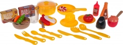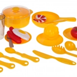 Topf mit Deckel, Pfanne, Teller, Utensilien und diverse Lebensmittelattrappen ermöglichen Dutzende von Spielszenarien und fördern kreatives Spiel.