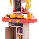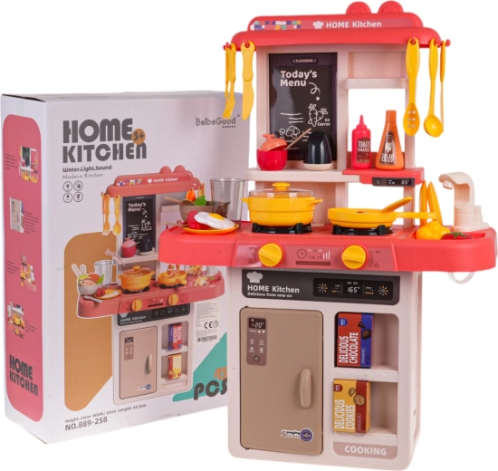 Diese interaktive Küche in lebendigen Farben begeistert jedes Kind. Dank beleuchteter Kochfelder und realistischer Koch- und Bratgeräusche ist das Spiel besonders fesselnd. Ein funktionierender Wasserhahn ermöglicht das Abspülen wie in einer echten Küche, während sich auch der „Kühlschrank“ mit Regalen zum Verstauen öffnen lässt.