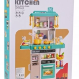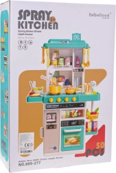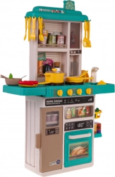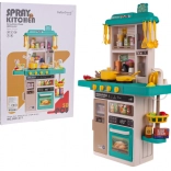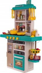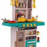 Diese Kinderküche bietet dank beleuchteter Kochfelder, drehbarer Knöpfe sowie Brat- und Kochgeräuschen ein realistisches Kocherlebnis. Aus einem Brenner entweicht sanfter Wasserdampf, der das Erlebnis noch intensiver macht. Der Wasserhahn mit fließendem Wasser ermöglicht es kleinen Köchinnen und Köchen, Geschirr wie in einer echten Küche abzuspülen.