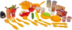 Pfanne, Topf, Teller, Besteck, Gewürze und Lebensmittelattrappen – alles sorgfältig aufeinander abgestimmt für viele Stunden kreativen Spielspaß.