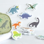 Badespaß ohne Chaos – 14 Schaumelemente mit niedlichen Dinosauriern haften nach dem Anfeuchten an den Wänden der Badewanne oder an Badezimmerfliesen. Nach dem Baden verstauen Sie sie einfach im Netz mit Saugnäpfen, das alles zusammen und griffbereit hält.