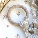 Sicherheitshinweis: Vor jeder Verwendung prüfen, ob der Beißring beschädigt ist, und bei Mängeln nicht weiter verwenden. Mit einem feuchten Tuch und Seifenwasser reinigen; vor dem ersten Gebrauch alle Verpackungen entfernen.