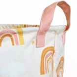 Der stilvolle Aufbewahrungskorb mit fröhlichem Regenbogenmotiv bringt Ordnung und ein verspieltes Design ins Kinderzimmer. Er ist leicht, stabil und dank der inneren PE-Beschichtung auch zum Sammeln von Wäsche geeignet.