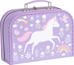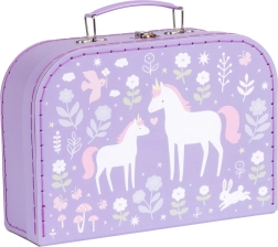 Das Set aus zwei dekorativen Koffern von A Little Lovely Company bringt ein verspieltes Design mit Einhörnern, Regenbogen und Blumen auf violettem Hintergrund. Die leichte und dennoch stabile Konstruktion aus robustem Karton mit hochwertiger Steppung garantiert lange Haltbarkeit und angenehmes Tragen.