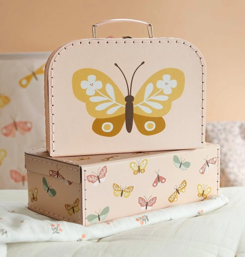 A Little Lovely Company Set aus zwei Kinderkoffern aus Karton mit Waldtier-Motiv – Schmetterlinge