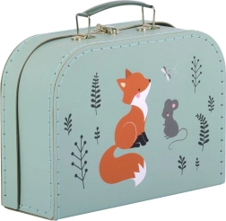Entdecken Sie das zauberhafte Set aus zwei Koffern mit Illustrationen von Fuchs, Eule und weiteren Waldfreunden. Dank der zwei Größen ordnen Sie Spielzeug, Stifte und kleine Schätze ganz leicht. Die robuste Kartonkonstruktion mit hochwertiger Steppung hält dem täglichen Gebrauch stand, während Metallgriff und Verschluss für angenehmes Tragen und sicheres Schließen sorgen.
