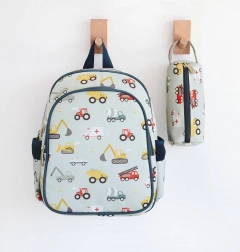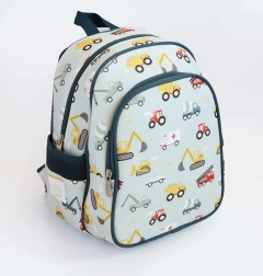 Der hellblaue Rucksack von A Little Lovely Company mit Druck beliebter Fahrzeuge ist für kleine Abenteurer konzipiert. Die clevere Innenaufteilung sorgt dafür, dass Kinder alles übersichtlich griffbereit haben – von der Brotzeit in der isolierten Fronttasche bis zur Trinkflasche in der Seitentasche. Gepolsterter Rücken und Gurte bieten den ganzen Tag über Komfort.