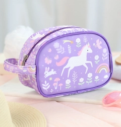 Diese niedliche rosa Kulturtasche mit Einhörnern und Regenbogen hält alle Hygieneartikel der Kinder ordentlich zusammen. Dank des geräumigen Hauptfachs passen Shampoo, Seife, Zahnbürste, Zahnpasta und weitere Kleinigkeiten hinein. Die praktische Schlaufe ermöglicht bequemes Tragen oder Aufhängen.