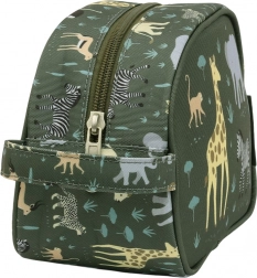 Stilvolles und praktisches Kinder-Kulturtäschchen mit fröhlichen Motiven von Giraffe, Zebra, Löwe und weiteren Savannenbewohnern. Dank der kompakten Maße passt es in Rucksack und Koffer und hält alle Hygieneartikel ordentlich zusammen.
