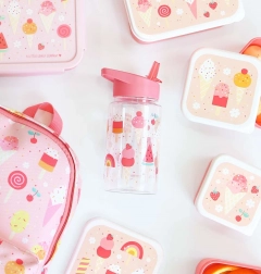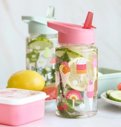 Diese stylische Trinkflasche aus gesundheitlich unbedenklichem Tritan ist leicht, robust und für den täglichen Gebrauch konzipiert. Dank des praktischen Verschlusses und des Trinkröhrchens trinken Kinder bequem und ohne Verschütten. Der transparente Körper mit verspieltem Eiscreme-Motiv fördert das Trinkverhalten und macht die Flasche zum beliebten Begleiter unterwegs.