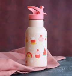 Die beliebte Kinderflasche mit verspieltem Design begeistert Kindergarten- und Schulkinder. Dank Edelstahl und doppelwandiger Ausführung behalten Getränke länger ihre ideale Temperatur. Im Lieferumfang enthalten sind ein Drehverschluss, Ausgießer und ein Strohhalm für kalte Getränke. Für heiße Getränke kann ein schraubbarer Edelstahlverschluss zugekauft werden, um die Flasche in eine Thermosflasche zu verwandeln.