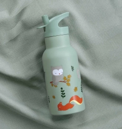 Das entzückende Waldmotiv begeistert Kinder, die hochwertige Verarbeitung überzeugt Eltern. Die Flasche ist leicht, liegt gut in der Kinderhand und bietet dank der doppelwandigen Konstruktion eine zuverlässige Isolierung. Für heiße Getränke kann ein separat erhältlicher Edelstahlschraubverschluss dazugekauft werden, der die Flasche in eine Thermosflasche verwandelt.