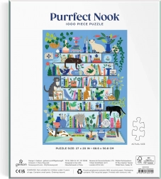 Die Illustration PURRFECT NOOK von Flora Waycott bezaubert durch detailreiche Ausarbeitung und kräftige Farben. Im Set liegt zudem ein Vorlagenbild für komfortables Puzzeln bei.