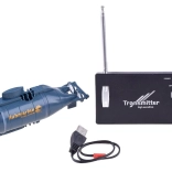 Zuverlässige 49-MHz-Frequenz für stabile Reichweite. Der Sender fungiert auch als Ladegerät – einfach das Kabel an der Vorderseite des U-Boots anschließen.