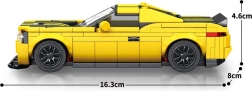 Ein Set technischer Bausteine zum Bau eines sportlichen, gelben Autos ist das ideale Geschenk für Motorsport- und Modellbau-Fans.