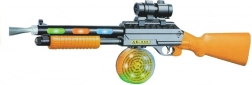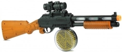 Schwarze Konstruktion kombiniert mit braunen Details imitiert ein echtes Gewehr. Trommelmagazin und Visier erhöhen den Realismus beim Spielen.