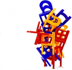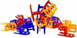 Jeder Spieler stapelt nach und nach einen Stuhl auf den anderen, sodass der entstandene Turm nicht zusammenfällt. Stapelt die bunten Stühle übereinander und baut den höchstmöglichen Turm. Wer es nicht schafft, die stabile, stehende Pyramide zu halten, verliert. Bereits gestapelte Stühle dürfen nicht berührt oder bewegt werden. Der Turm kann mit mehreren Personen oder allein gebaut werden.