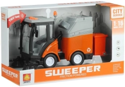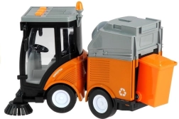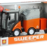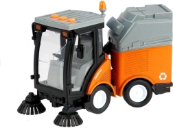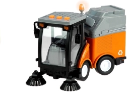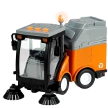 An der Vorderseite des Fahrzeugs befinden sich zwei rotierende Bürsten, die Schmutz von der Fahrbahn kehren. Die transparente Fahrerkabine ist mit Lenkrad, Sitz und zwei Pedalen ausgestattet. Das Fahrzeug sieht wie echt aus und behält alle Hauptkomponenten bei. Es enthält Spiegel, Bürsten, ein Dachlicht und Federn, die die Kabine mit dem hinteren Teil des Fahrzeugs verbinden. Das Fahrzeug steht auf drehbaren gummierten Rädern und bewegt sich dadurch sanft auf verschiedenen Oberflächen.
