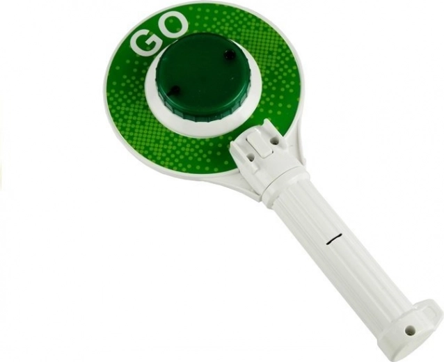 Eine Seite grünes GO, die andere rotes STOP – ideal, um grundlegende Verkehrsanweisungen spielerisch zu vermitteln.