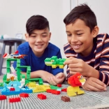 Der robuste rote Aufbewahrungsbehälter mit Deckel im Baustein-Design bietet Platz für den Transport und die Aufbewahrung aller 253 Teile.