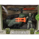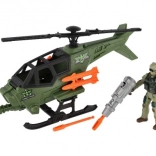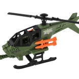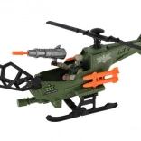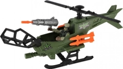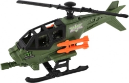 Der grüne Militärhubschrauber mit schwarzen Rotoren und orangefarbenen Geschossen besticht durch sein realistisches Design und unterstützt spannende Spielszenarien.