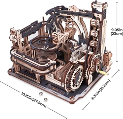 Der RoboTime Kosmodrom ist ein präzise gefertigtes 3D-Holzpuzzle und eine Kugelbahn in einem. Durch ausgeklügelte Zahnräder, Aufzüge und Weichen entsteht eine gleichmäßige, dynamische Bewegung der Kugeln. Das Modell kann manuell oder elektrisch per USB‑C-Kabel (nicht im Lieferumfang) betrieben werden – für eine ununterbrochene Show.