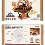 Das Schiffsmodell enthält ausgearbeitete Details von Drachenköpfen und Rudern, die ihm Authentizität und ästhetischen Wert verleihen.
