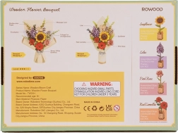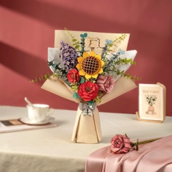 Entdecken Sie den Zauber eines Blumenstraußes, dessen Schönheit nie verblasst. Das Holz 3D Puzzle beinhaltet Sonnenblume, Flieder, rote Kamelie, rosa Rose und Eukalyptus. Jede Blume hat eine verstellbare Stiellänge, was vielfältige Arrangements ermöglicht.