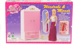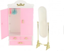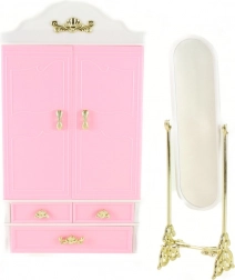 Fügen Sie Ihrem Kinderspiel den Kleiderschrank und Spiegel Glorie hinzu, der mit einem übersichtlichen Design und Funktionalität für ihre Puppen kommt. Kinder können das Verstauen der Kleidung mit praktischen Kleiderbügeln genießen, während der Spiegel eine Note von Eleganz in ihre Spielszene bringt.