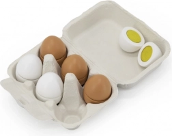 Die Eier sind mit einem Klettverschluss verbunden, was das Schneiden in zwei Teile ermöglicht und einen realistischen Spielelement hinzufügt.