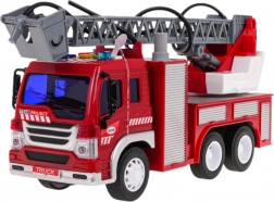 Interaktives Feuerwehrauto mit Licht- und Soundfunktion sowie Wasserbesprühung für Kinder ab 3 Jahren. Das Feuerwehrauto ist aus hochwertigsten Materialien in leuchtenden Farben gefertigt. Es verfügt über bewegliche Elemente wie eine verstellbare Leiter, die nach oben und unten bewegt sowie ausgezogen und verkürzt werden kann. Am Ende der Leiter befindet sich eine Plattform mit dem Anschluss des Feuerwehrschlauchs, aus dem Wasser fließt. Am vorderen Teil des Anhängers ist ein Wassertank angebracht. Sobald der Tank mit Wasser gefüllt ist, genügt es, die Taste an der Oberseite des Tanks zu drücken und das Wasser beginnt zu fließen. Auf dem Dach der Fahrerkabine befinden sich Tasten, die beim Drücken das Geräusch einer Sirene, einer Hupe oder eines Fahrzeugschusses wiedergeben. Die Geräusche werden von blinkenden Lichtern des Feuerwehrbalkens begleitet. Das Fahrzeug hat Gummireifen und einen Reibungsantrieb auf der Vorderachse. Es wird mit AG13-Batterien betrieben (im Lieferumfang enthalten). .. Funktionen des Fahrzeugs: . - geeignet für Kinder ab 3 Jahren, .- hergestellt aus sehr hochwertigen Materialien, .- Maßstab 1:16, .- bewegliche Elemente: Leiter auszieh- und absenkbar, ausfahrbar und verkürzbar, .- Kranarm um 360 Grad drehbar, .- Wasser spritzt aus dem Feuerwehrschlauch, .- Reibungsantrieb der Vorderräder, .- Gummireifen, .- Lichteffekte: blinkende Lichter auf dem Fahrzeugdach, .- Soundeffekte: Sirenensignal, Hupe oder Schussgeräusch des Fahrzeugs. . |