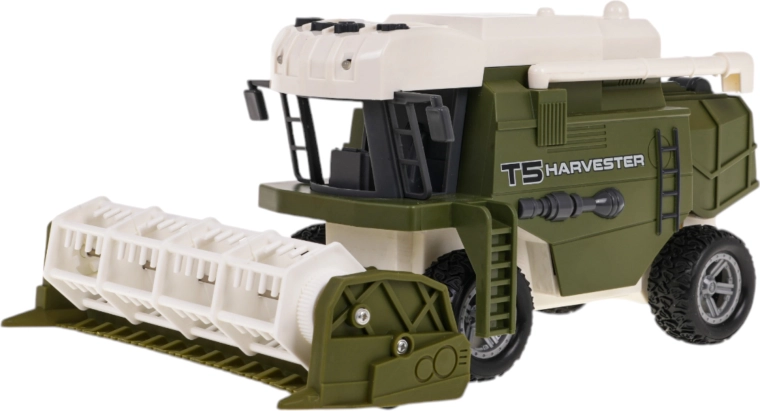 Dank Detailgenauigkeit sieht der Mähdrescher wie echt aus, einschließlich großer Gummireifen mit Hinterradantrieb.