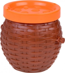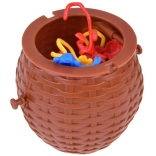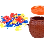 Der Kunststoffkorb mit Deckel eignet sich nicht nur für das Spiel, sondern auch als Aufbewahrungsplatz für die Affen nach dem Spiel.