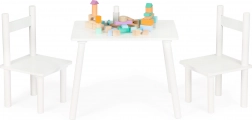 Schaffen Sie Ihren Kindern eine eigene Ecke zum Spielen und Lernen. Das weiße Holz-Set von ECOTOYS vereint schlichtes skandinavisches Design mit langlebiger Verarbeitung: Massive Kiefernholzbeine sorgen für Stabilität, und die MDF-Platte lässt sich leicht sauber halten. Das Set umfasst einen Tisch und zwei bequeme Stühlchen mit aufeinander abgestimmten Proportionen.