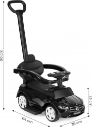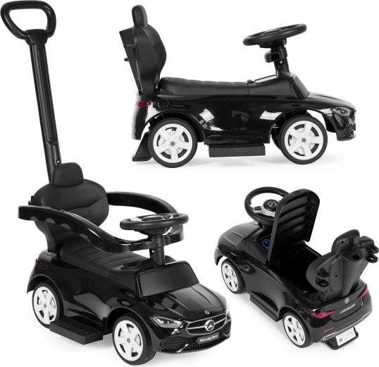 Das lizenzierte Kinder-Rutschauto Mercedes C‑Class beeindruckt mit realistischen Details – Kühlergrill, Leuchten und Motorhaubenform. Dank stabiler Konstruktion, Schutzbügeln und einer hinteren rutschfesten Kippschutzstütze ist die Fahrt drinnen wie draußen sicher. Eltern schätzen die Schiebestange für volle Kontrolle über Richtung und Geschwindigkeit.
