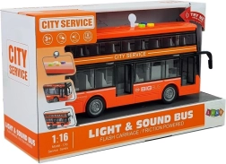 Erleben Sie grenzenlosen Fahrspaß mit diesem friktionsbetriebenen Doppeldecker-Bus in leuchtendem Orange. Der realistische Modellbus ist robust konstruiert und bietet zahlreiche Stunden Unterhaltung für Ihr Kind.